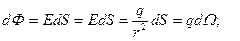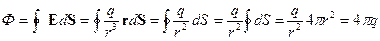 В последнем случае для точечного заряда поток через замкнутую сферическую поверхность (с зарядом в центре) будет равен: