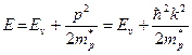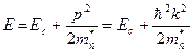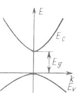 Вблизи дна зоны проводимости зависимость энергии электрона от величины импульса (или волнового числа k):