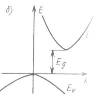 | Рис. 2.3,а. Энергетическая диаграмма прямозонного полупроводника | Рис. 2.3б. Энергетическая диаграмма непрямозонного полупроводника |