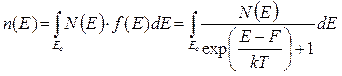 Чтобы определить, какое число электронов в системе может принимать участие в электропроводности, необходимо рассчитать распределение концентрации электронов по энергиям и проинтегрировать эту зависимость по всей разрешенной зоне как произведение плотности состояний на вероятность их заполнения: