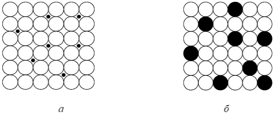 Рис. 4.7. Атомно-кристаллическая структура твердого раствора: а – внедрения; б – замещения