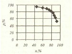 При оценке качества реальных систем наиболее часто используются лишь коэффициенты полноты и точности. Ясно, что и точность поиска, и его полнота зависят не только от свойств поисковой системы, но и от правильности построения конкретного запроса, а также от субъективного представления пользователя о том, что такое нужная ему информация. Однако при желании можно вычислить и средние значения полноты и точности для конкретной системы, протестировав ее на эталонной базе документов. Очевидно, хорошая поисковая система должна иметь как можно большие полноту и точность, желательно - 100%, т. е. находить все нужные документы и ни одного лишнего. Однако стопроцентное качество поиска невозможно, потому что на фиксированном уровне мощности поискового средства все попытки улучшить один из этих параметров приводят к ухудшению другого (см. рис. 10.)