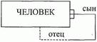 Данная диаграмма может быть интерпретирована следующим образом: Каждый СТУДЕНТ учится только в одной ГРУППЕ; Любая ГРУППА состоит из одного или более СТУДЕНТОВ. На следующем рисунке (рис.13) изображена сущность ЧЕЛОВЕК с рекурсивной связью, связывающей ее с ней же самой.