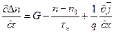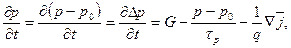 В общем случае, для полупроводника, в объеме которого происходит генерация (G) и линейная рекомбинация, изменение концентрации носителей во времени заряда может быть определено в результате решения уравнения непрерывности: