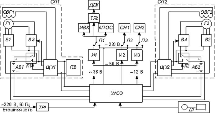 В состав ЭЭК входит также дизель-генератор мощностью 12 кВт для питания вагона на стоянках, не оборудованных электросетью, изолирующий трансформатор ТР1 и кабель с разъемом для подключения к внешней электросети. Для преобразования постоянного напряжения 50 В в переменное 220 В, 50 Гц используются три инвертора И1 - И3 мощностью 2,7 кВт каждый, а также устройство управления, сигнализации и защиты УУСЗ. Подзарядка батарей возможна как от внешней сети, так и от дизель-генератора ДГ. создание в дистанциях электроснабжения, обслуживаемых вагонами нового поколения, компьютерных станций расшифровки и анализа результатов измерений, передаваемых пользователю на магнитных носителях; создание набора алгоритмов и программного обеспечения, позволяющих использовать результаты измерений нажатия в комплексе с другими параметрами для балльной оценки существующих и исследования перспективных контактных подвесок. | ||||||