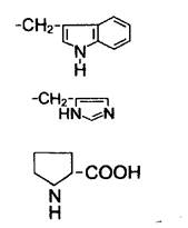 9. АК с гетероциклическими радикалами, триптофан – гидрофобный незаряженный, гистидин гидрофильный, положительно заряженный, пролин гидрофильный, незаряженный.