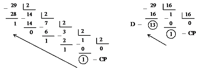 Пример. Перевести десятичное число X = 29 в двоичную и шестнадцатеричную СС.