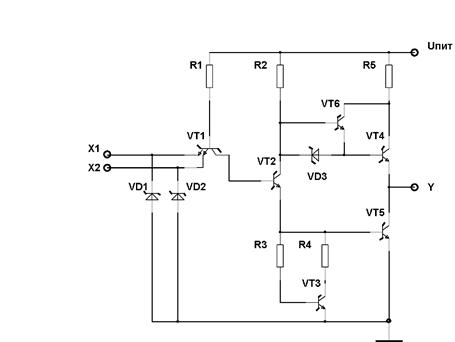 Рис.4.5. Схема электрическая принципиальная элемента 2И-НЕ ТТЛ.