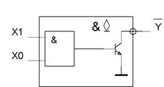 Рассмотренные логические элементы могут иметь некоторые схемотехнические особенности построения выходных каскадов. Рассмотрим основные из них на примере ТТЛ элементов, учитывая при этом, что подобные решения применяются и для логических элементов, выполненных с использованием других технологий. Наряду с базовым элементом И-НЕ, рассмотренным ранее, там, где не требуется высокого быстродействия, широко используются элементы И-НЕ с «открытым коллектором». Упрощенное схемное изображение этого элемента представлено на рис. 4.13.