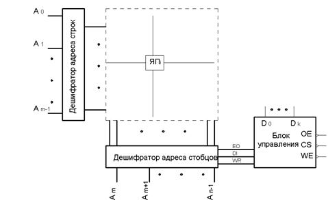 Доступ к ЯП матрицы накопителя осуществляется с помощью двух дешифратор адреса столбцов и строк.