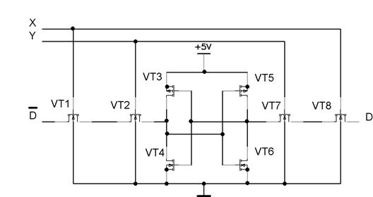 появлении высокого уровня на обеих шинах X и Y данная ячейка оказывается выбранной и в зависимости от состояния входов