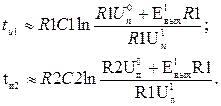 , следовательно, сопротивления время задающих резисторов R1, R2 должно быть достаточно малым. При этом нужно выполнить условие