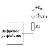 составляющего от 1,5 до 3 В (в зависимости от цвета индикатора) и напряжением питания (Uп):