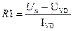 Расчет токоограничивающего резистора R1 в этой схеме определяется допустимым током через индикатор (IVD), падением напряжения на индикаторе (UVD),