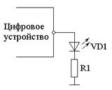 В большинстве современных микросхем ток «1» превышает минимальный ток зажигания светодиода. В ряде случаев это может упростить принципиальную схему устройства. Схема с использованием единичного тока цифровой микросхемы приведена на рис. 8.7.