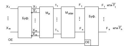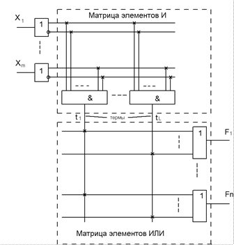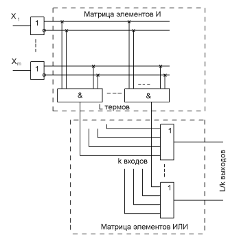 Основными параметрами ПЛМ является число входов m, число термов L, и число выходов n.