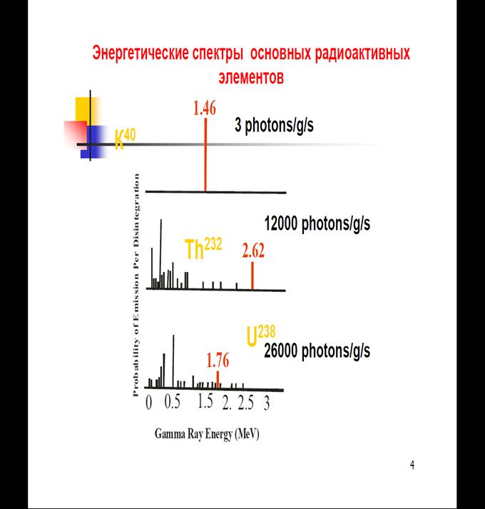 Спектрометрический ГК, кроме суммарной интенсивности гамма-излучения пород, измеряет энергетическое распределение регистрируемых гамма-квантов и по спектрам гамма-излучения позволяет определять удельные гамма-активности и концентрации U, Th и K.
