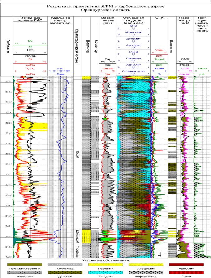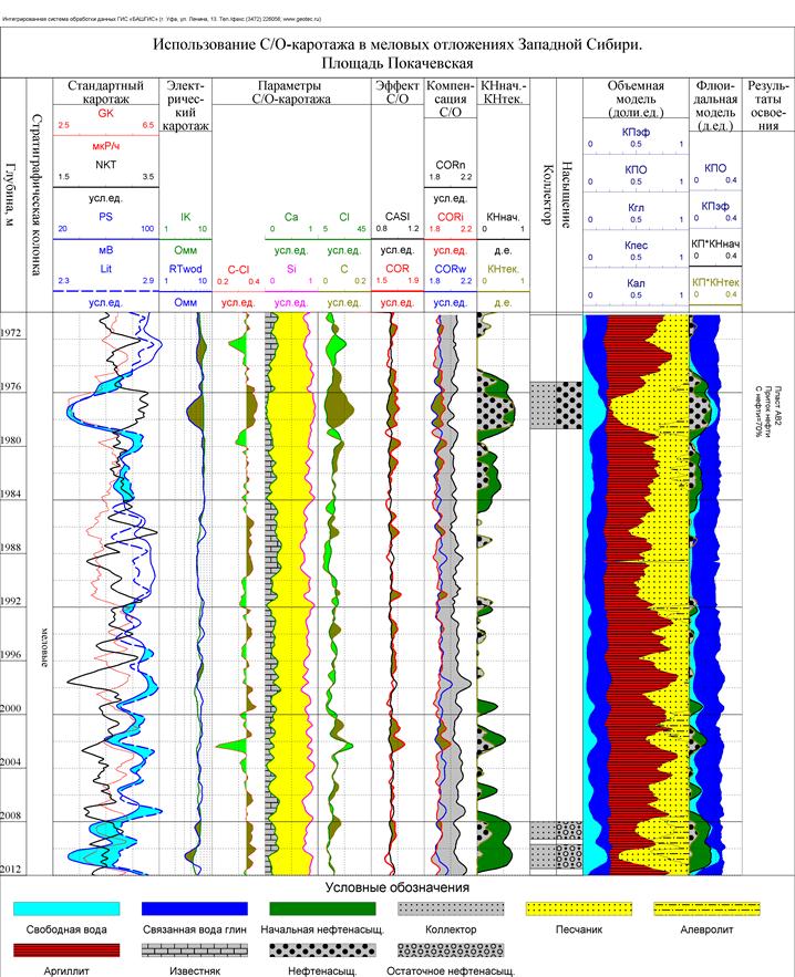 Анализ спектров С/О-каротажа при наличии соответствующего интерпретационного обеспечения позволяет определять относительные содержания в породе основных элементов (O, Si, Fe, Ca, Mg, H, C), составляющих минеральный скелет (матрицу) горных пород, и четырех основных элементов (O, H, C, Cl), образующих флюид порового пространства.