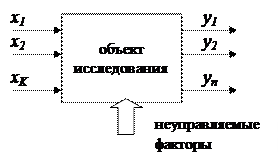 На выходе объекта наблюдают случайные величины y 1... yn, которые являются исследуемыми характеристиками (параметрами) объекта. Случайные неуправляемые факторы вызывающие разброс выходных параметров объекта y 1... yn.