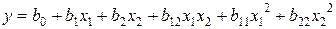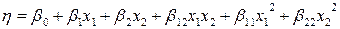 в которой коэффициенты bi являются оценками коэффициентов искомой функции βi. Полином включает линейные относительно факторов слагаемые, эффекты взаимодействия и слагаемые второго и более высоких порядков.