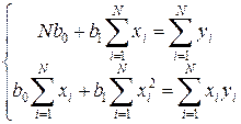 Число уравнений в системе (3.21) равно числу двух искомых коэффициентов b0 и b1.