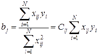 При ортогональном планировании формула для определения коэффициентов принимает вид: