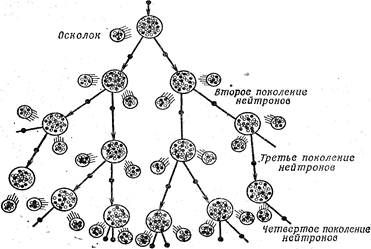 Схема развития цепной реакции деления тяжелых ядер урана.