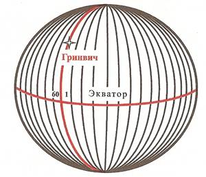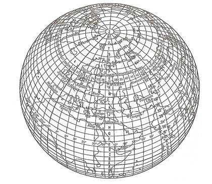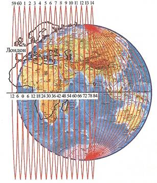 Рис.1.7. Деление земной поверхности на 6-ти градусные зоны