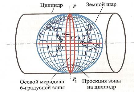 Рис.1.8. Проектирование земной поверхности на поверхность цилиндра.
