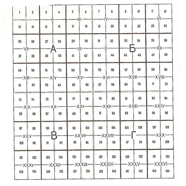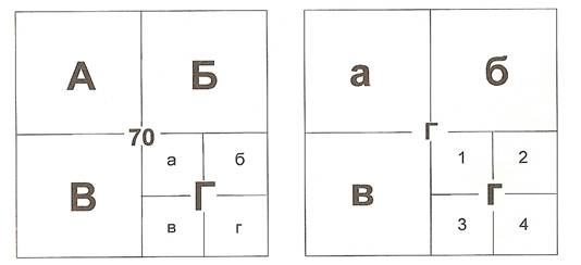 Рис.1.12. Разграфка карт масштаба 1:50 000, 1:25 000, 1:10 000 из листа карты 1:100 000.