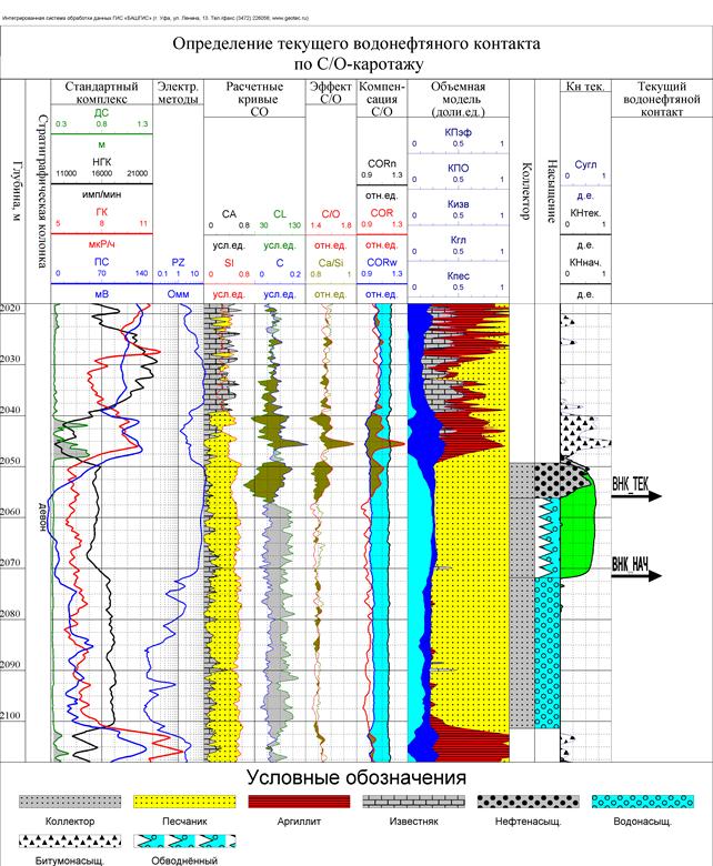 Основным результатом интерпретации данных C/O-каротажа является текущая насыщенность пласта. Для решения практических задач при количественном анализе необходима опорная информация в виде результатов ГИС открытого ствола и данные ИНГК и СГК в обсаженном стволе