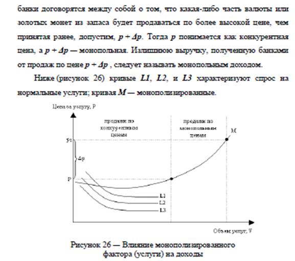 Обратим внимание ещё на один специфичный момент ценообразования в банках - монополизм. Справедливо замечание о том, что это явление на рынке финансовых услуг не только не искоренено, напротив, развивается и даже «поддерживается» государством.