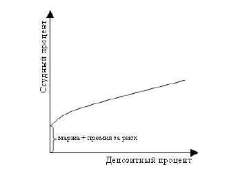 Высокие цены привлечения, объявленные банком, позволяют в сжатые сроки сформировать требуемые по объёму и качеству пассивы. Рост полезности услуги (в данном случае услуга банка — предоставление ссуды клиенту) требует соответствующих затрат, поскольку в основе ссудного процента лежит процент депозитный (рисунок 29).