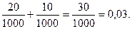 Пример 5.2.2. В лотерее 1000 билетов. На 20 из них падает вещевой выигрыш, на 10 – денежный. Найти вероятность выигрыша на один купленный билет.