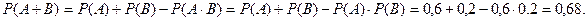 Р(А+В)=Р(А)+Р(В)-Р(А×В) (7).