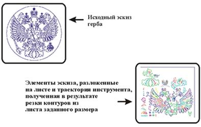 Исходные данные составляет математическая модель в виде совокупности контуров, определяющих резку 2D (по одному контуру) и резку 3D (по двум контурам разнесенным в компланарных плоскостях) с наклоном проволоки. В качестве основы математической модели могут быть использованы: