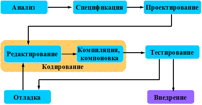 Среда программирования это совокупность программ, обеспечивающих технологический цикл разработки программ: анализ, спецификация, проектирование, кодирование (редактирование, компиляция, компоновка), тестирование, отладка.