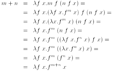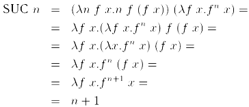 т.е. 0 = λ f х. х, 1 = λ f x. f х, 2 = λ f x. f (f x) и т.д. Данное представление называется «цифрами по Черчу». Цифры по Черчу обладают рядом удобных формальных свойств.