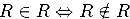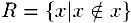 Рассмотрим парадокс Рассела. Определим множество R, состоящее из всех множеств, которые не содержат себя в качестве элемента: