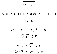 или просто Т:: σ, если суждение о типизации выполняется в пустом контексте. Элементы контекста? имеют вид ν:: σ, т. е. они представляют собой предположения о типах переменных. Будем предполагать, что в? нет противоречивых предположений.