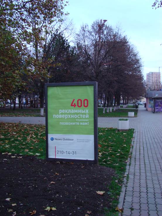 Наружная реклама - это реклама, размещаемая в основном в общественных местах, где она доступна для обозрения широкому кругу населения.