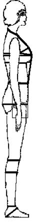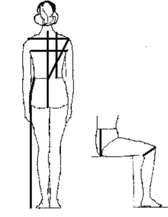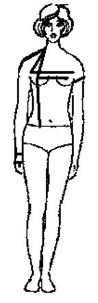 Парные измерения снимают по правой стороне фигуры, а при значительной ее асимметрии – по обеим сторонам. С целью повышения точности измерений необходимо зафиксировать на фигуре заказчика важнейшие линии: талию (с помощью плотной эластичной тесьмы шириной 1,5-2,0 см), типовое положение плечевого шва (с помощью наплечника), и горизонтали на уровне задних углов подмышечных впадин (с помощью дополнительной сантиметровой ленты или эластичной тесьмы)