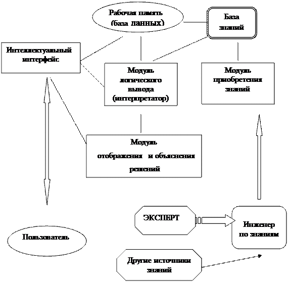 Данная структура – это структура статической ЭС, т.е.такой, которая не учитывает изменения окружающей среды, происходящие за время решения задачи. Экспертные системы, учитывающие такие изменения, называются динамическими. По сравнению со статическими ЭС они имеют два основных дополнительных компонента - подсистему моделирования внешнего мира и подсистему сопряжения с внешним миром [4, 8,11].