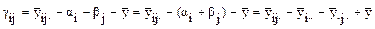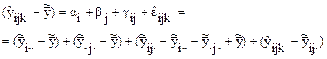 - математическое ожидание выходной переменной у при фиксированных уровнях i и j факторов х1 и х2 соответственно;