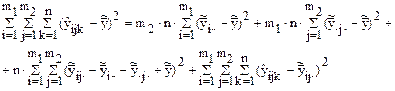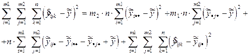 Можно показать, что в результате получим следующее выражение, являющееся основным тождеством вариаций дисперсионного анализа: