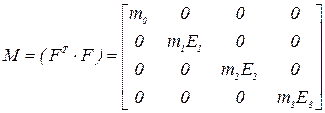 скалярные произведения столбцов при квадратичных функциях также будут равны нулю [1]. Информационная матрица примет вид