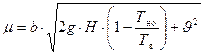 g = 9,81 м ² /с – ускорение силы тяжести;