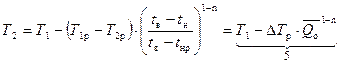 Общее уравнение для регулирования отопительной нагрузки при зависимых схемах присоединения установок к тепловым сетям имеет вид: