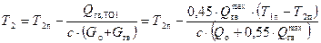 Расход сетевой воды через ТО2, температуру воды на выходе из ТО2, температуру смеси на входе в ТО1 и температуру воды на выходе из ТО2 (Т 2) определяют методом подбора из уравнений: