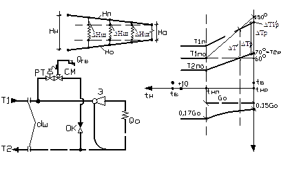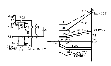 В этом случае для покрытия нагрузки на горячее водоснабжение при G р = G о + G в температура в подающем трубопроводе тепловой сети должна быть выше, чем требуется по отопительному графику.